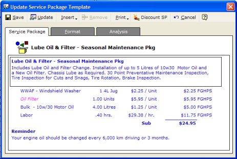 Service Packages (which are sometimes called kits) may be thought of as mini-invoices which describe each common service at your shop. You can drop them onto an invoice with the click of a mouse.